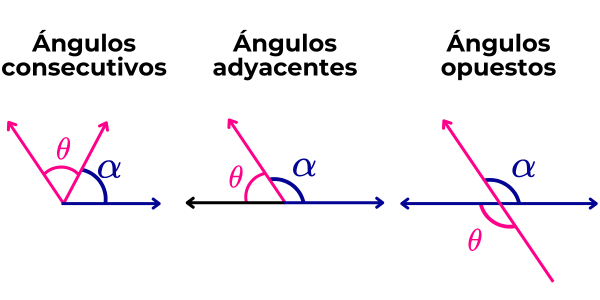 - Ángulos consecutivos: Son aquellos que comparten el vértice y uno de sus lados.